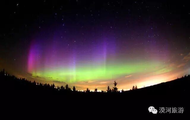 漠河位于北緯五十三度半的高緯度地帶,因而有“白夜”和“北極光”兩大天然奇景。